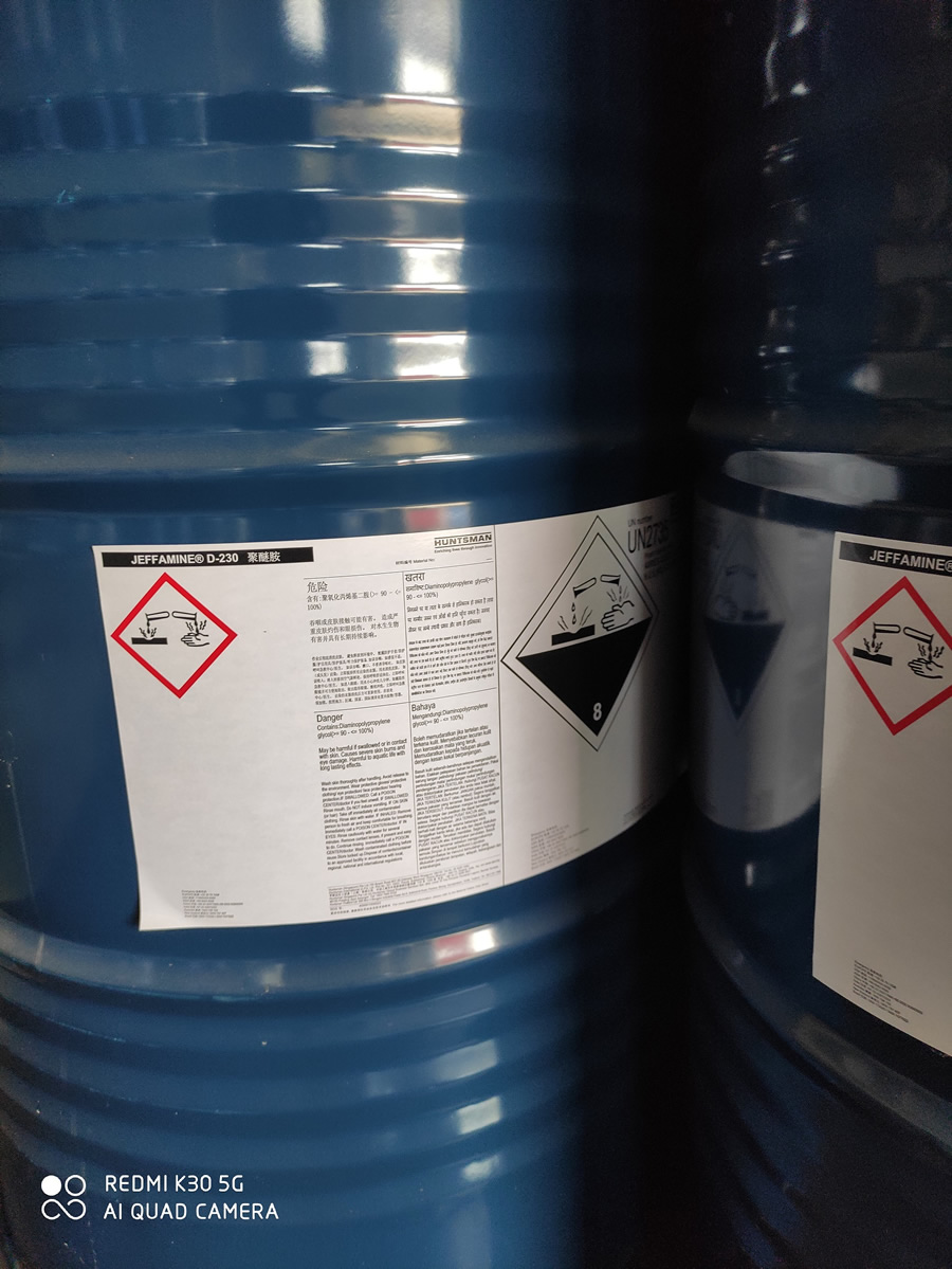 產(chǎn)品名 | 聚醚胺D230 | 英文名 | Polyetheramines | 產(chǎn)品外觀 | 無(wú)色或淺黃色液體 | 包裝規(guī)格 | 195kg/桶(鐵桶) | 產(chǎn)地 | 新加坡 | 供應(yīng)商 | 亨斯邁 | 應(yīng)用 | 固化劑、膠黏劑、地坪漆等 | 危險(xiǎn)類別 | 8類; | CAS NO | 9046-10-0 |