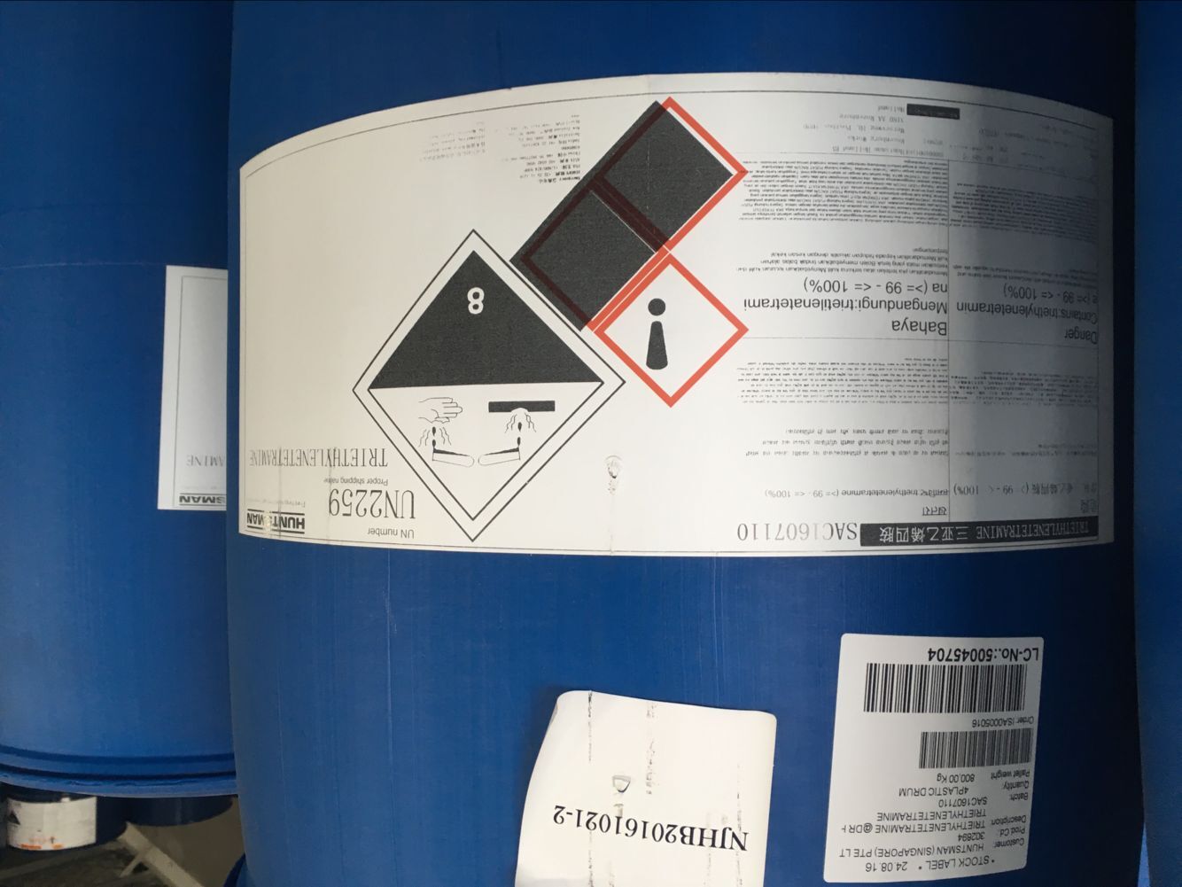 產(chǎn)品名 | 三乙烯四胺 | 英文名 | Triethylenetetramine(TETA) | 產(chǎn)品外觀 | 微黃液體 | 包裝規(guī)格 | 200kg/桶(塑料桶) | 產(chǎn)地 | 美國、沙特 | 供應(yīng)商 | 亨斯邁 | 應(yīng)用 | 造紙、潤滑油、固化劑、聚酰胺樹脂等 | 危險(xiǎn)類別 | 8類; | CAS NO | 112-24-3 |
